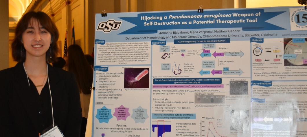 Undergraduate researcher Adriahna Blackburn was recently featured on the OSU website for her research presentation at Research Day at the Capitol in Oklahoma City. The article can be found here.